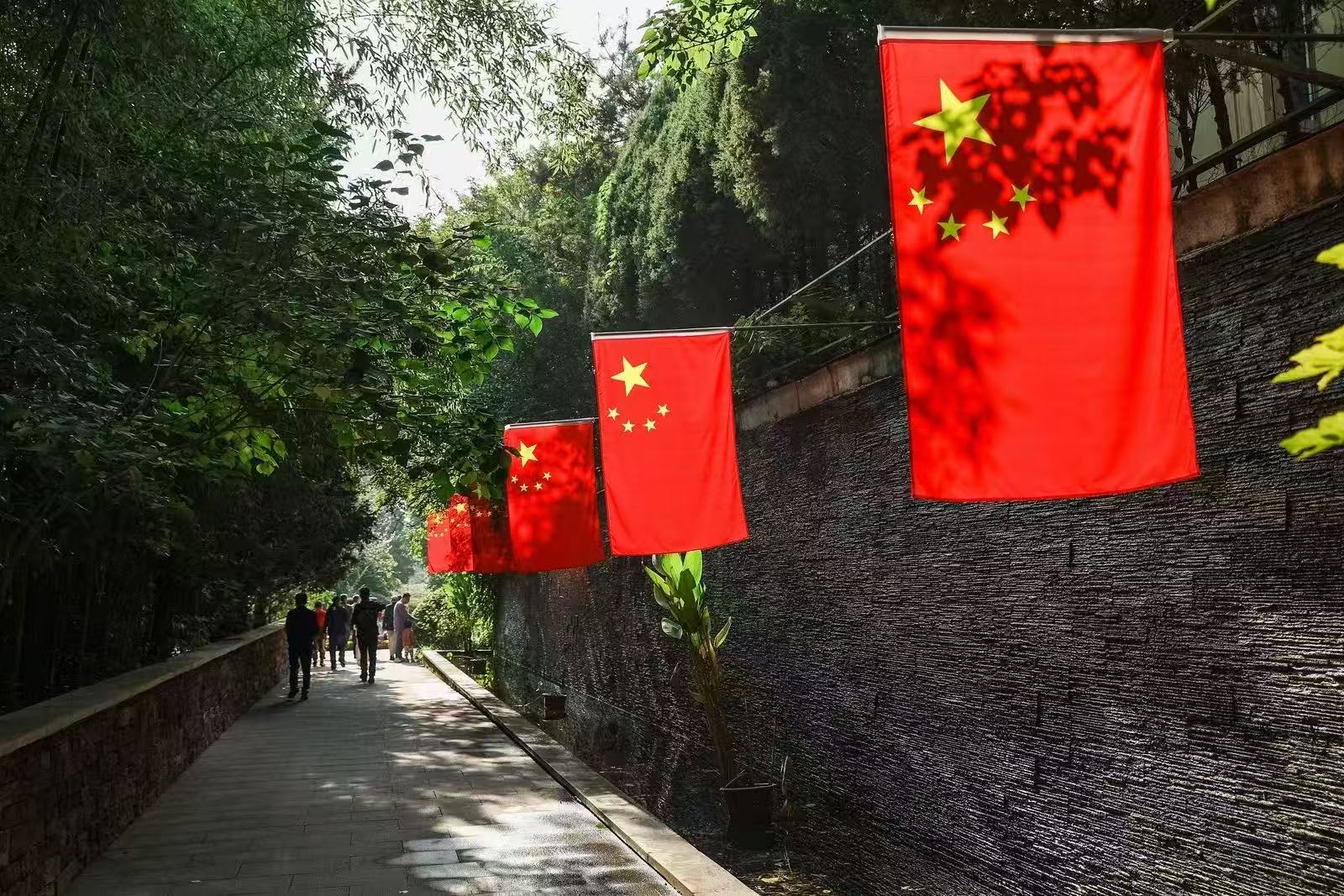 国庆期间酒店挂满了国旗氛围感很强